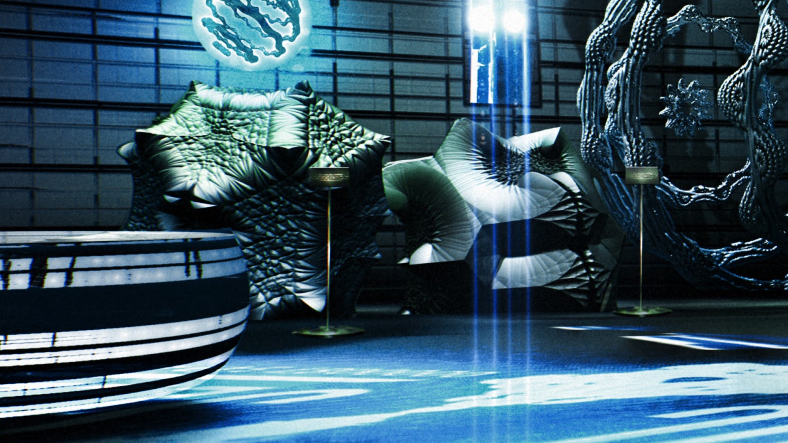Весь материал был создан мной с нуля , начиная от логотипа и заканчивая всем техническим наполнением сцен , большая помощь в качестве референсов мне послужила возможность работы с реалтаймовым рендерингом фрактальных формул .